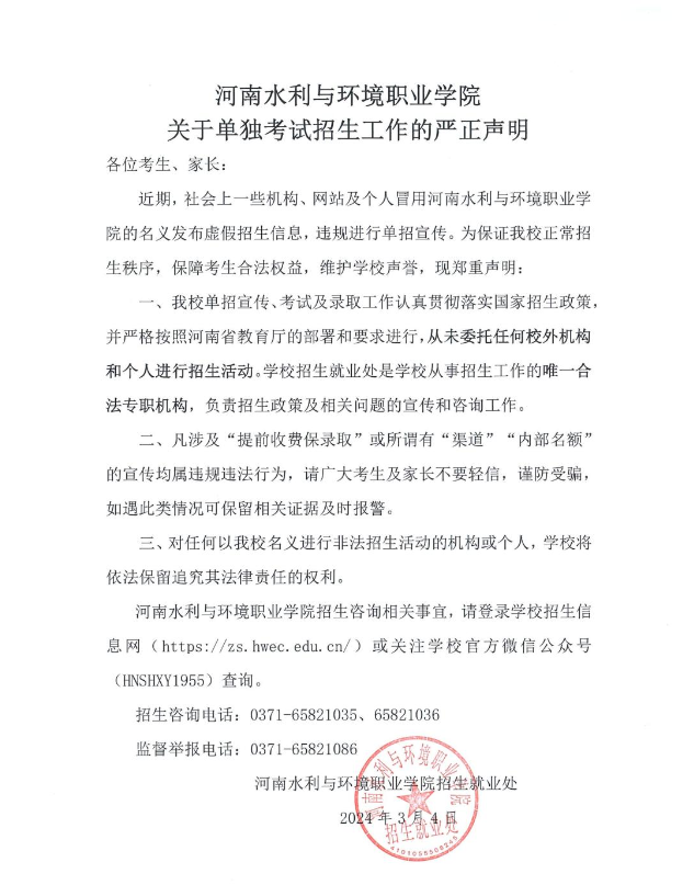 河南多所學校就單獨考試招生工作發(fā)布嚴正聲明