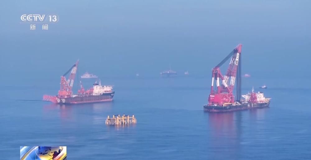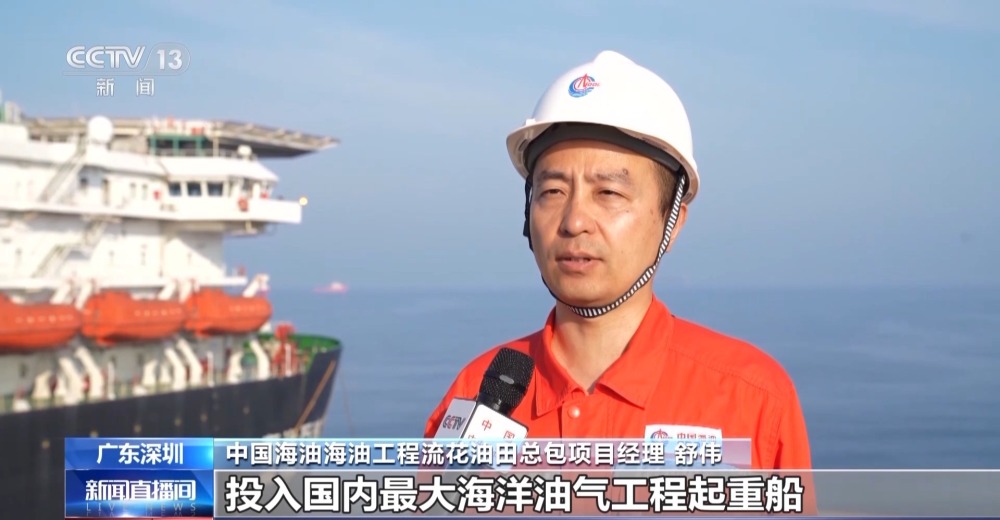 總臺(tái)央視記者 古峻嶺:在“?;?hào)”海上安裝作業(yè)現(xiàn)場(chǎng),經(jīng)過(guò)16個(gè)小時(shí)的連續(xù)施工作業(yè),“?;?hào)”已經(jīng)由昨天滑移下水時(shí)的橫向漂浮狀態(tài),變?yōu)橹绷顟B(tài),它高達(dá)338米的龐大身軀,已經(jīng)穩(wěn)穩(wěn)站立在了324米深的海床之上,僅有10余米的部分露出水面,接下來(lái)工作人員將以它為基礎(chǔ),建設(shè)安裝一座萬(wàn)噸級(jí)海上鉆井平臺(tái)。未來(lái)它將在臺(tái)風(fēng)和惡劣海況的輪番考驗(yàn)下,在這里穩(wěn)穩(wěn)矗立30年,源源不斷地將深海油氣輸送到千家萬(wàn)戶,為保障國(guó)家能源安全提供堅(jiān)強(qiáng)支撐。
