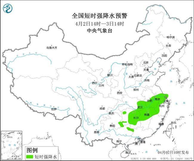 預(yù)計(jì),4月2日14時(shí)至3日14時(shí),湖北東南部、安徽中南部、江蘇南部、上海、湖南、江西中北部、浙江西部和北部等地部分地區(qū)有大到暴雨,其中,江西北部等地局地有大暴雨(100~150毫米)。上述部分地區(qū)伴有短時(shí)強(qiáng)降水(最大小時(shí)降雨量30~50毫米,局地可超過(guò)70毫米),局地有雷暴大風(fēng)或冰雹等強(qiáng)對(duì)流天氣。