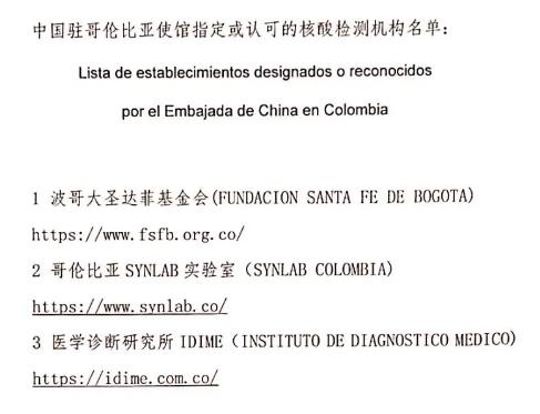 駐哥倫比亞使館提醒經(jīng)有關(guān)國家赴華乘客做好核酸檢測