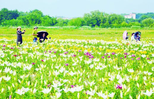 5月27日,江華瑤族自治縣沱江鎮(zhèn)天橋村生態(tài)農(nóng)業(yè)綜合產(chǎn)業(yè)園,游客在賞花、拍照。該產(chǎn)業(yè)園種植的百合既可觀賞又可食用,面積達(dá)100余畝,每畝產(chǎn)值可達(dá)3萬(wàn)元以上?;ê?dòng)了當(dāng)?shù)氐穆糜?,促進(jìn)了村民增收致富。(黎實(shí) 趙媛媛 攝影報(bào)道)