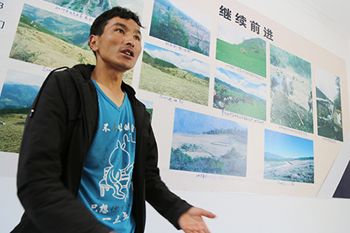 同樂(lè)村感恩連連長(zhǎng)和生向記者介紹感恩連情況。人民網(wǎng) 宋晨攝