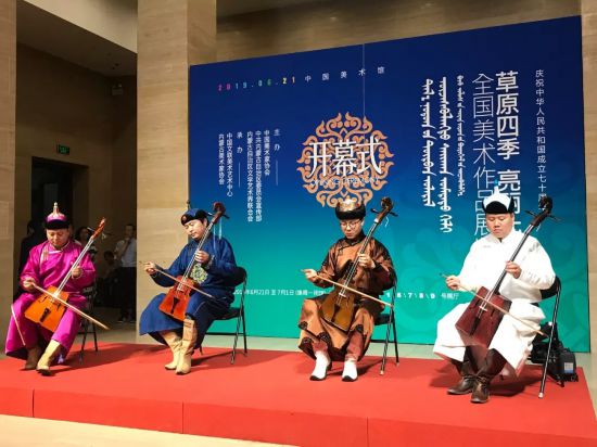 6月21日下午,慶祝中華人民共和國成立七十周年——“草原四季 亮麗北疆”全國美術(shù)作品展覽開幕式在中國美術(shù)館舉行。