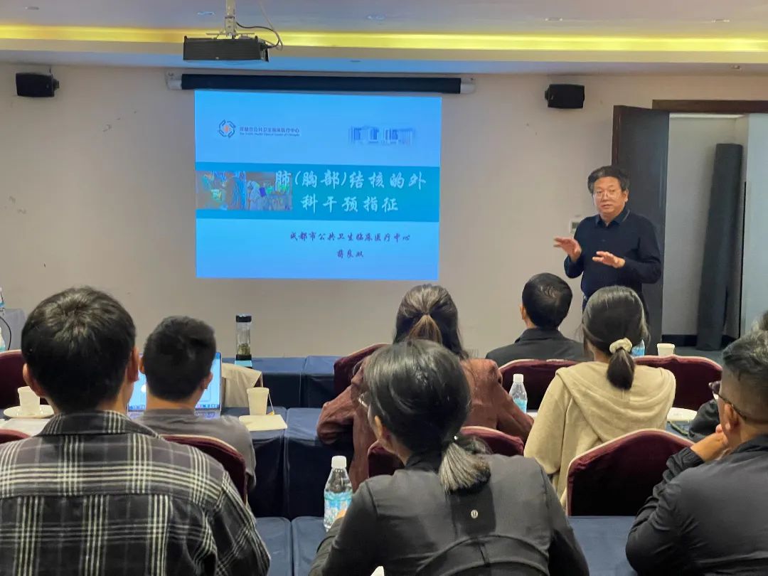 7月12日,日喀則市衛(wèi)生健康委員會(huì)舉辦結(jié)核病救治能力提升培訓(xùn)班,醫(yī)療機(jī)構(gòu)、疾控中心、基層醫(yī)務(wù)工作者50余人參加培訓(xùn)。成都市公共衛(wèi)生臨床醫(yī)療中心結(jié)核三科主任何畏、結(jié)核一科主任楊銘及結(jié)核六科醫(yī)療組長劉華結(jié)合當(dāng)?shù)嘏R床實(shí)際病例,分別講授《特殊人群結(jié)核病的治療》《耐藥肺結(jié)核規(guī)范治療》《中國藥物性肝損傷基層診療與管理指南》。蔣良雙副書記特別講授了《肺(胸部)結(jié)核的外科干預(yù)指征》,對(duì)手術(shù)指征、手術(shù)方式以及術(shù)中解剖作詳盡講解。參訓(xùn)醫(yī)護(hù)人員對(duì)結(jié)核病臨床診療技術(shù)、影像學(xué)診斷、功能室診斷、實(shí)驗(yàn)室檢查、外科手術(shù)診療、結(jié)核病防控等有了系統(tǒng)認(rèn)識(shí),現(xiàn)場(chǎng)討論熱烈。