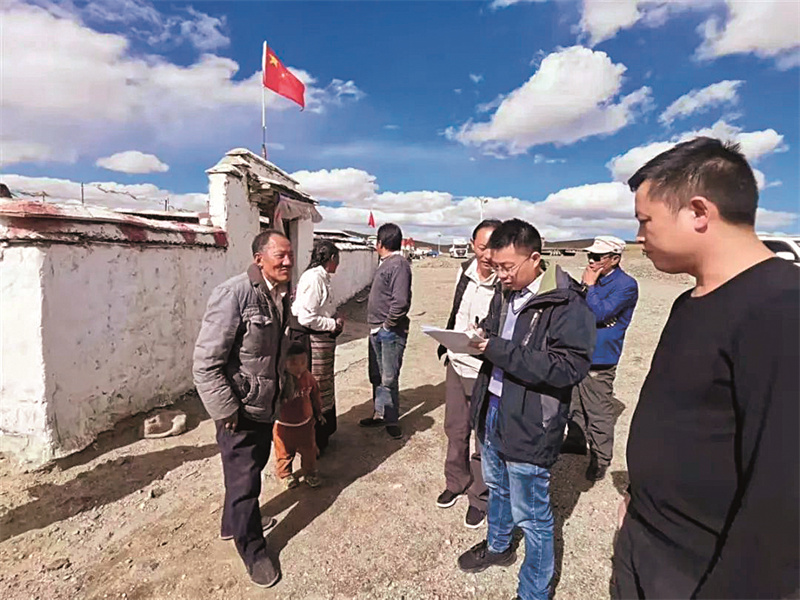 羅文兵(右三)在那曲市走入農(nóng)戶(hù),與群眾交流。