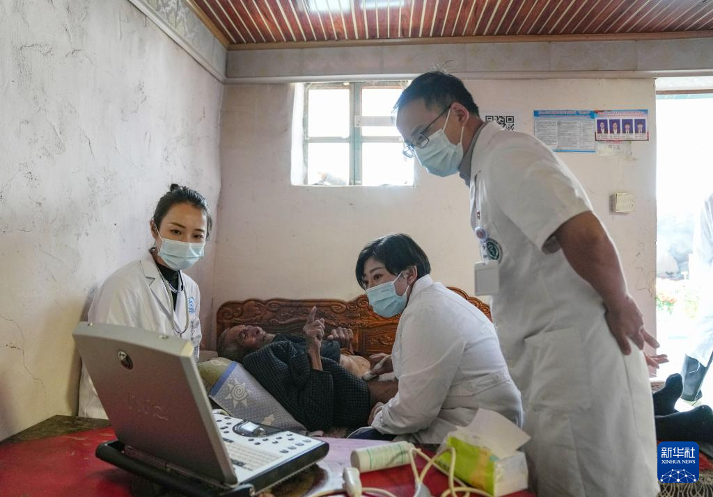 8月30日,義診隊在重癥病人家中為病人做腹部B超。新華社記者 晉美多吉 攝
