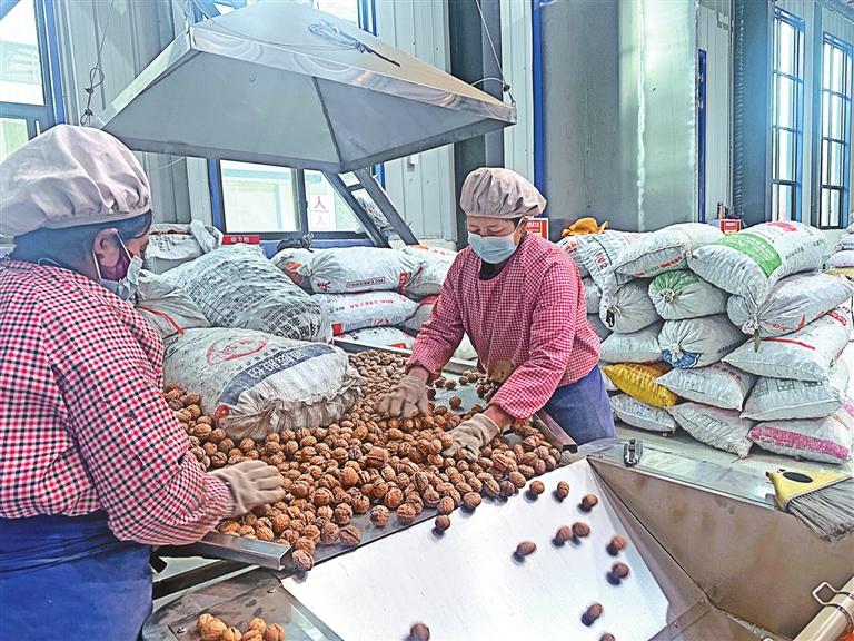工人們在挑選野生山核桃油的原料。圖由福建省援藏工作隊(duì)提供