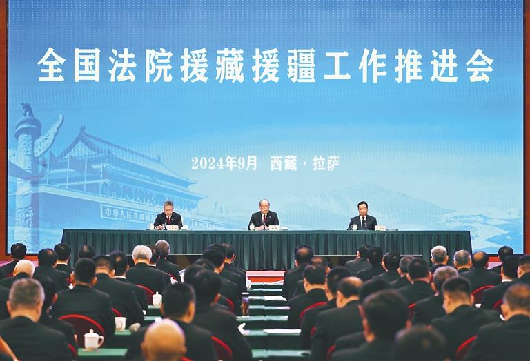 王君正表示,新時(shí)代新征程,推進(jìn)中國(guó)式現(xiàn)代化西藏實(shí)踐,既需要西藏各族人民持之以恒艱苦奮斗,更離不開(kāi)黨中央的親切關(guān)懷和全國(guó)人民的大力支持。希望最高法繼續(xù)加強(qiáng)對(duì)西藏法院工作的指導(dǎo)幫助,全國(guó)法院系統(tǒng)進(jìn)一步加大援藏工作力度,提升西藏法院工作整體水平。西藏將堅(jiān)持以習(xí)近平新時(shí)代中國(guó)特色社會(huì)主義思想為指導(dǎo),堅(jiān)持用習(xí)近平總書記關(guān)于西藏工作的重要指示和新時(shí)代黨的治藏方略統(tǒng)攬工作全局,認(rèn)真貫徹落實(shí)第四次對(duì)口支援西藏工作會(huì)議精神,總結(jié)經(jīng)驗(yàn)、再接再厲,積極推動(dòng)法院系統(tǒng)援藏工作不斷取得新成效,努力建設(shè)社會(huì)主義現(xiàn)代化新西藏。
