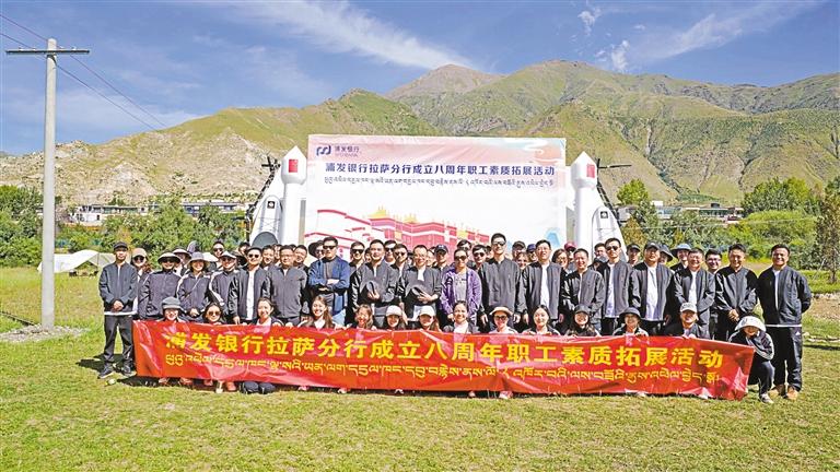 浦發(fā)銀行拉薩分行成立8周年職工素質(zhì)拓展活動合影。