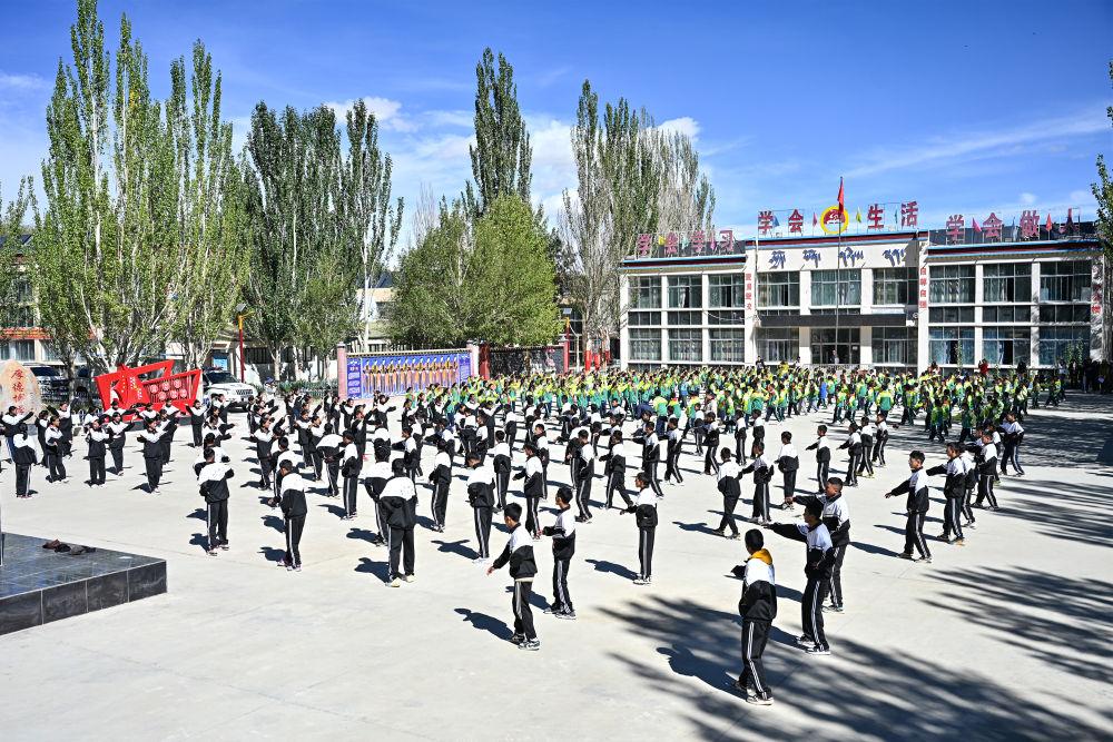 課間時(shí)分,孩子們跳起融入國家級(jí)非物質(zhì)文化遺產(chǎn)“宣舞”特色的課間操,各民族學(xué)生手拉著手,笑容如同高原陽光般燦爛。
