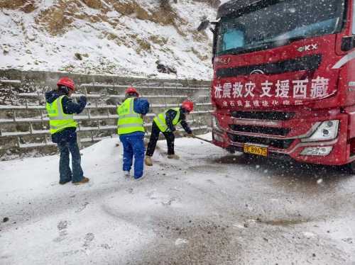 1月13日中午,一輛滿載援藏物資的紅色卡車在海拔4800米的安多境內(nèi)遭遇強(qiáng)降雪,車輛失控,形勢萬分危急。在這關(guān)鍵時(shí)刻,中交建設(shè)者們挺身而出,成功救助了遇險(xiǎn)車輛,確保了寶貴物資的安全?! ?/p>