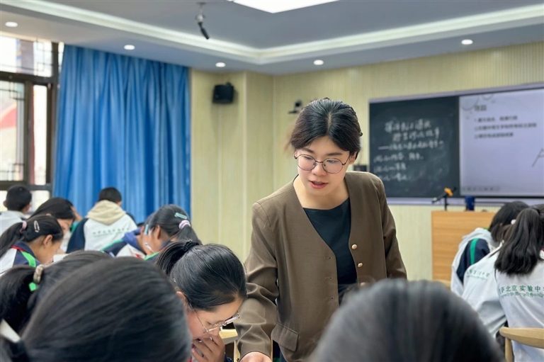 在拉薩北京實(shí)驗(yàn)中學(xué),北京援藏教師馬瀟雅上語(yǔ)文“雙師”課《中華同源》。拉薩北京實(shí)驗(yàn)中學(xué)供圖