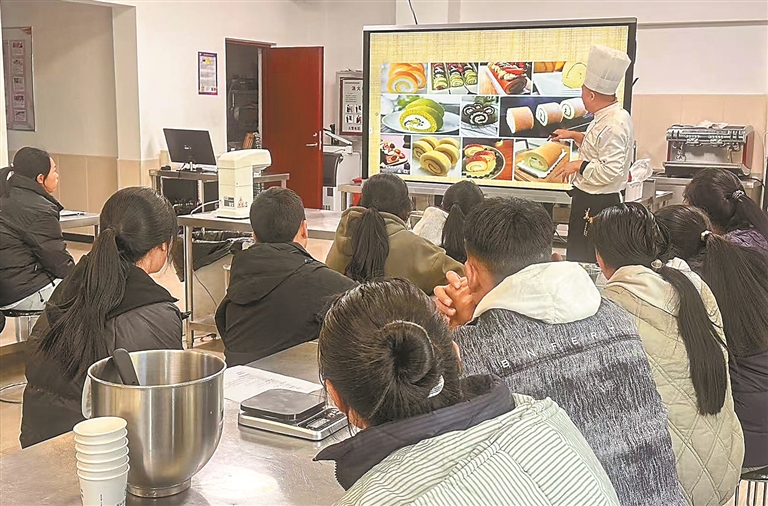 圖為在“西藏阿里地區(qū)鄉(xiāng)村振興旅游從業(yè)人員河北培訓(xùn)班”課堂上,教師正在為阿里地區(qū)職業(yè)技術(shù)學(xué)校學(xué)生進(jìn)行系統(tǒng)性培訓(xùn)。