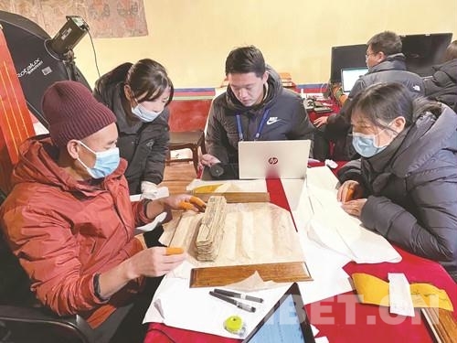 圖為工作人員對古籍文獻進行登記、整理、分類、對勘 西藏自治區(qū)文物局供圖