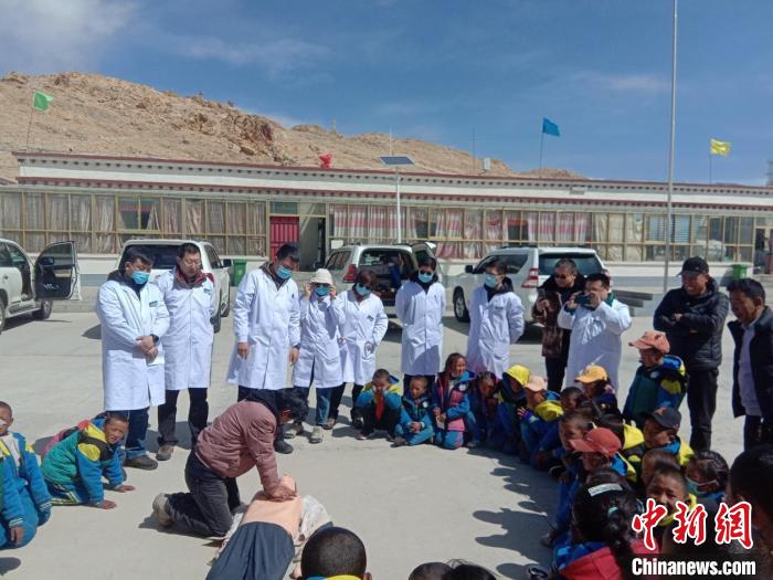 醫(yī)療隊為波絨鄉(xiāng)中心小學(xué)師生進(jìn)行心肺復(fù)蘇現(xiàn)場培訓(xùn)。 煙臺援藏醫(yī)療隊供圖