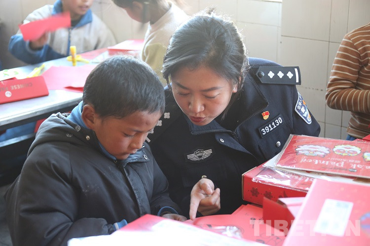 隨后,民警們?yōu)橥瑢W(xué)們發(fā)放了拉薩邊檢站和東莞邊檢站共同準(zhǔn)備的兒童手工DIY禮盒,并和同學(xué)們一起完成剪紙手工制作,共同感受著中華傳統(tǒng)文化美學(xué),體驗(yàn)手工制作的樂趣?,F(xiàn)場歡聲笑語,其樂融融。