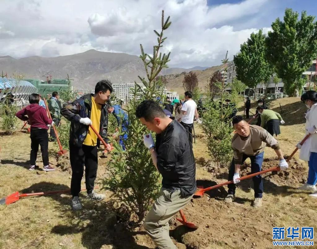 在植樹現場,大家揮鍬鏟土、澆水培樹,一派熱火朝天的勞動景象,留下在拉薩的“綠色回憶”。本次植樹造林活動共種下云杉、海棠、紫葉李、蘋果樹、丁香等樹木約2000株。志愿者們還將定期開展日常養(yǎng)護工作,鞏固綠化成果。