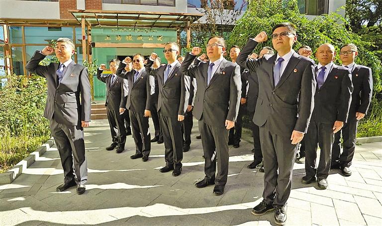 圖為上海市第九批援藏干部人才重溫入黨誓詞。