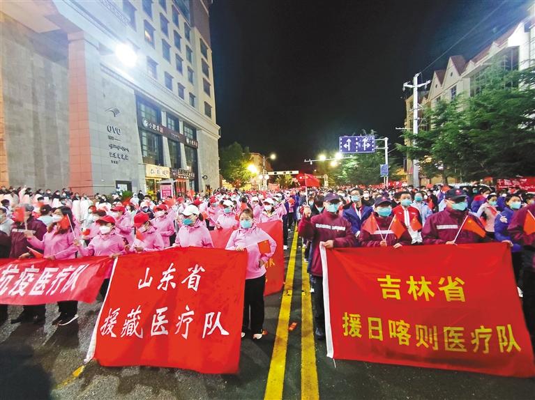 血脈相連、共克時(shí)艱。在日喀則市抗擊新冠肺炎疫情的緊要關(guān)頭,山東省委、省政府和吉林省委、省政府第一時(shí)間組織支援抗疫醫(yī)療隊(duì),馳援日喀則。全體醫(yī)療隊(duì)隊(duì)員響應(yīng)組織號召,主動請纓、逆行出征,帶著山東、吉林人民的深情厚誼,以生命守護(hù)生命、以大愛砥礪仁心,苦戰(zhàn)鏖戰(zhàn)40多個(gè)日日夜夜,為日喀則奪取抗擊新冠肺炎疫情全面勝利作出了突出貢獻(xiàn)。