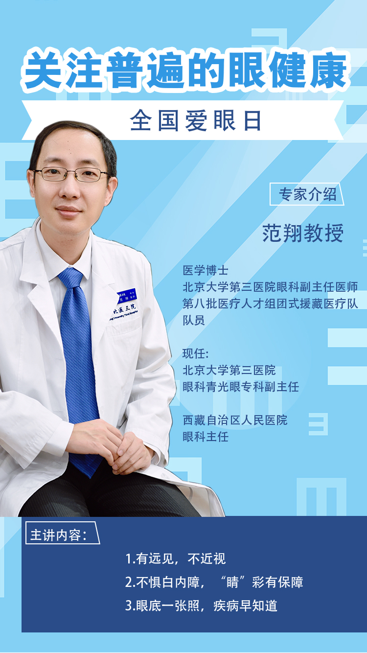 本期人物是來(lái)自北京大學(xué)第三醫(yī)院眼科專家、副主任醫(yī)師范翔,為大家總結(jié)眼病防治的常見(jiàn)知識(shí)。讓我們一起關(guān)注全年齡段全生命周期普遍的眼健康。