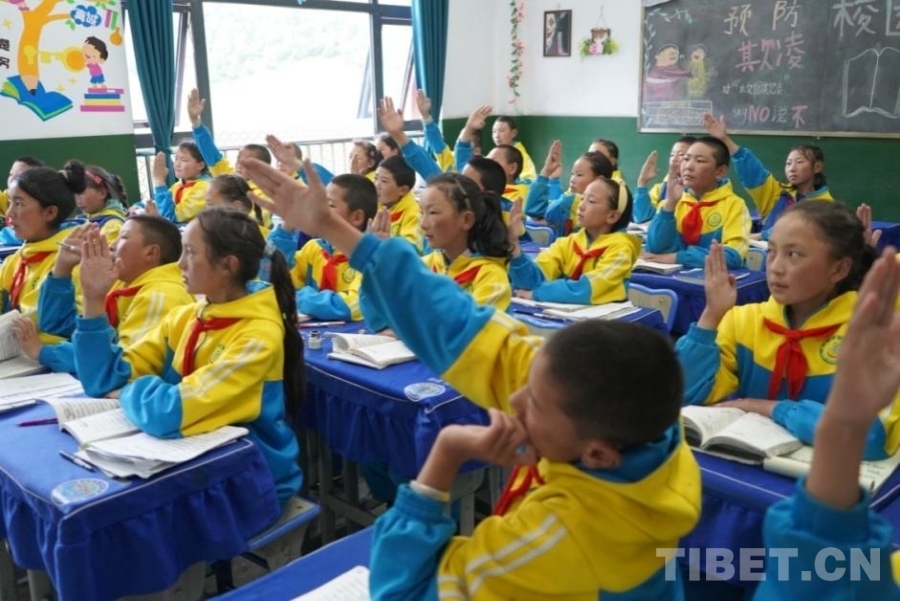 圖為那曲市索縣西昌鄉(xiāng)小學學生在課堂上舉手回答問題 攝影:吳建穎