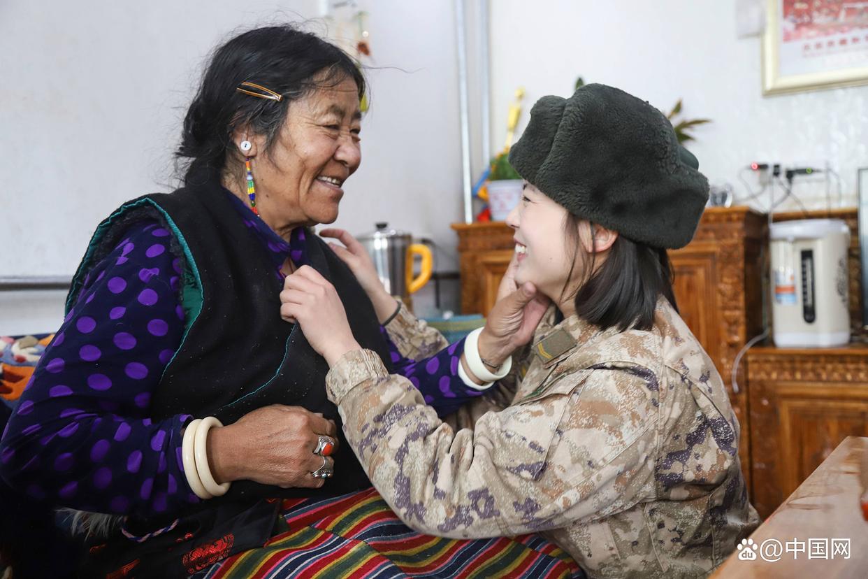2024年3月1日,新疆軍區(qū)某工兵團官兵們走進阿里日土縣的敬老院,開展學(xué)雷鋒志愿服務(wù)活動。女兵王文靜與藏族阿媽溫馨互動的畫面,成為當(dāng)天最暖心的一幕。 圖片來源:中國網(wǎng)