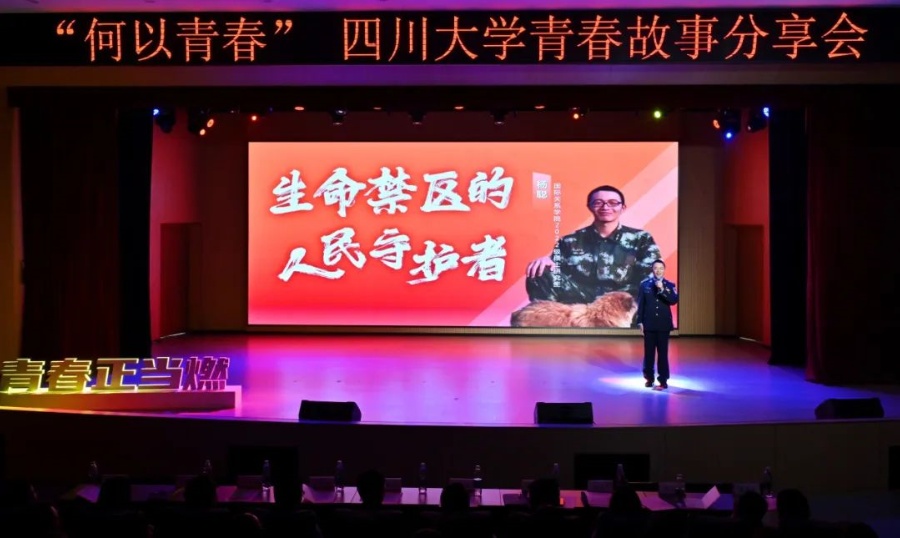 圖為楊聰正在四川大學(xué)青春故事分享會上演講。今年5月,他獲評四川大學(xué)2024年度“青年五四獎?wù)隆?圖片來源:四川大學(xué)微信公眾號