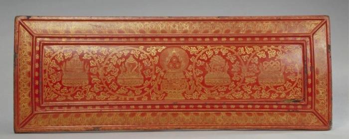 永樂版藏文《大藏經(jīng)》之紅漆戧金八吉祥紋經(jīng)文夾板(圖片來源:故宮博物院官網(wǎng))