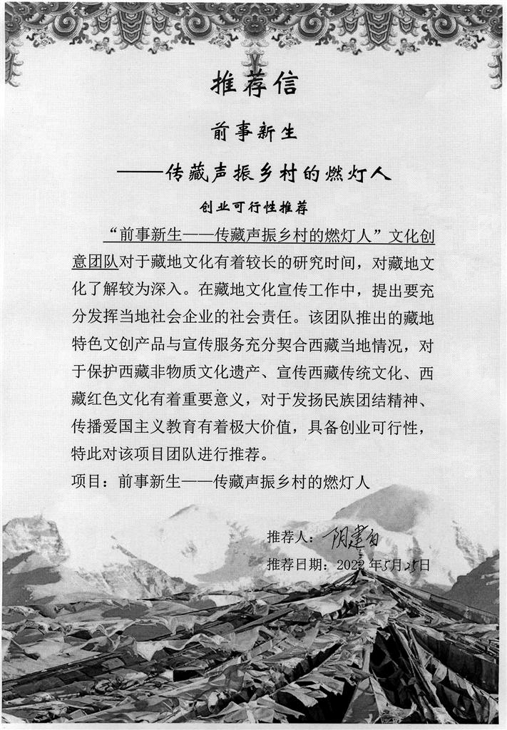 在西藏大學(xué)就讀期間,臧一陽(yáng)參與的《夏爾噶-傳藏聲振興村的燃燈人》《西藏紅色資源合理開(kāi)發(fā)利用政策研究》項(xiàng)目,分別獲得了第八屆中國(guó)國(guó)際“互聯(lián)網(wǎng)+”大學(xué)生創(chuàng)新創(chuàng)業(yè)大賽銀獎(jiǎng)、自治區(qū)第八屆“成才杯”銀獎(jiǎng)、國(guó)家級(jí)大學(xué)生創(chuàng)業(yè)項(xiàng)目等獎(jiǎng)項(xiàng)。
