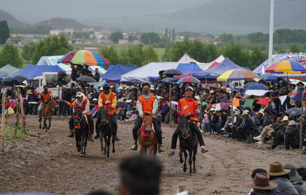 7月23日在拉薩甘旦曲果鎮(zhèn)賽馬場拍攝的走馬比賽。新華社記者 晉美多吉 攝