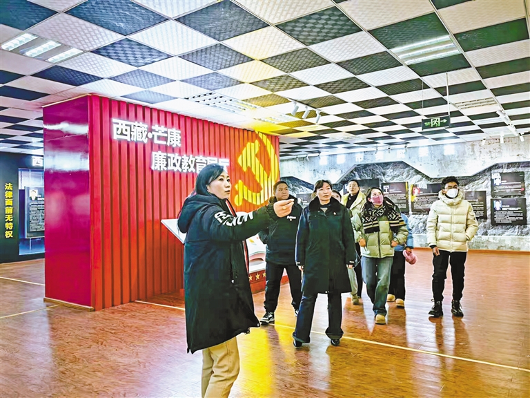 圖為芒康縣委宣傳部黨員干部參觀廉政教育展廳。記者 索朗旺久 通訊員 斯郎曲珍 攝