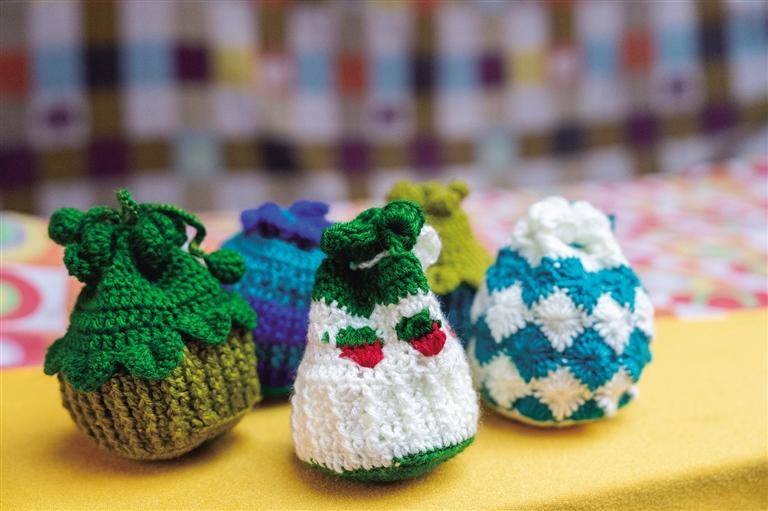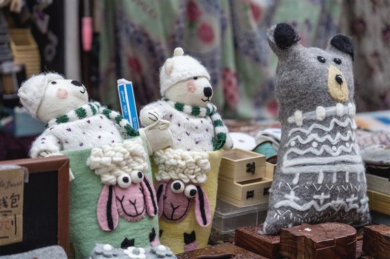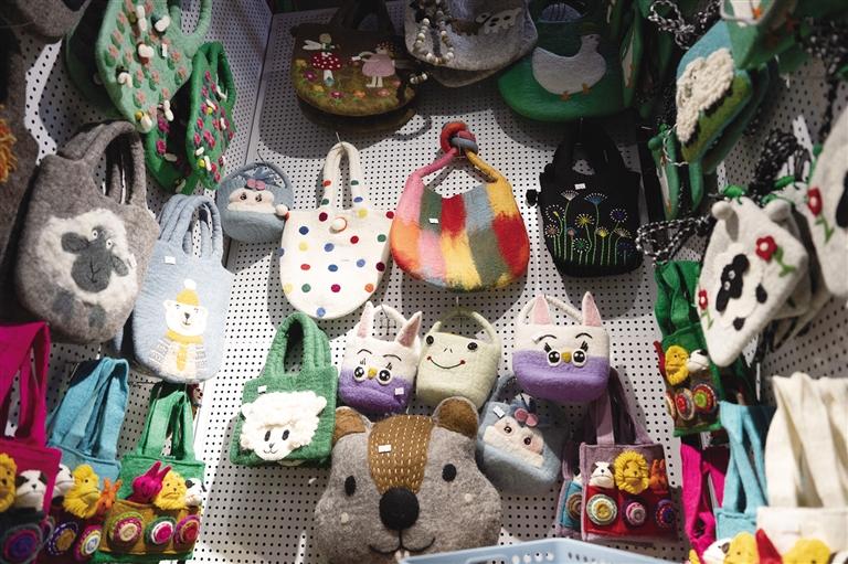 阿佳們親手鉤織的毛線茶杯套、毛線桌墊,既實(shí)用又色彩鮮明,墻上掛滿(mǎn)的手工編織牛毛包讓人“糾結(jié)癥”都犯了!和這座商城的建筑一樣,這里出售的美物將藏式美學(xué)展現(xiàn)得淋漓盡致。此外,這里還能淘到毛氈玩偶、毛氈風(fēng)鈴、毛茸茸的藏戲面具掛件等一些能給生活增添樂(lè)趣的“小廢物”。