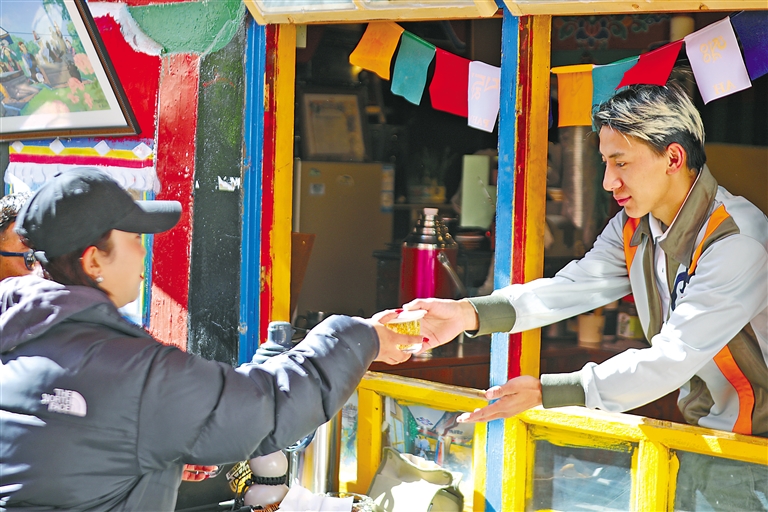 隨著對旦增特覺了解漸深,“擔(dān)當(dāng)”二字如烙印般刻在記者心間。在貢桑孜大院居民眼中,旦增特覺堪稱楷模,咖啡館的客人亦是對他贊不絕口。退休市民白珍笑容滿面地說道:“我們姐妹四個(gè)是網(wǎng)上結(jié)識這孩子的,上進(jìn)又努力,瞧著他一路打拼,心里頭滿是欣慰。這不,過幾天要去外地休養(yǎng),特意先來跟他道個(gè)別,盼著他這生意越來越紅火?!?/p>