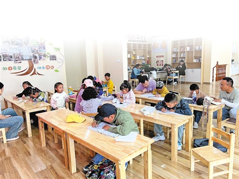 江蘇師范大學科文學院志愿者給社區(qū)孩子舉辦公益輔導班。圖/文 記者 巴桑旺姆