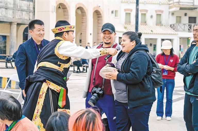 近日,林芝市非遺傳承人、青年企業(yè)家和青少年學(xué)生代表組團(tuán)赴澳門特別行政區(qū)開展“石榴籽一家親”林芝非遺展演交流活動。在澳門青年展藝協(xié)會和澳門大學(xué),與澳門文創(chuàng)青年代表進(jìn)行交流,學(xué)習(xí)非遺創(chuàng)新發(fā)展經(jīng)驗;在澳門漁人碼頭表演非遺舞蹈《米納羌姆》、工布扎念博咚彈唱《達(dá)姆韻》等節(jié)目,展現(xiàn)林芝的文化魅力。