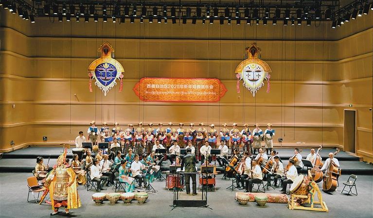 2月24日至25日,西藏自治區(qū)藏劇團(tuán)與自治區(qū)歌舞團(tuán)聯(lián)袂獻(xiàn)上西藏自治區(qū)2025年新年戲曲音樂(lè)會(huì)。音樂(lè)會(huì)由開(kāi)場(chǎng)《扎西德勒》和尾聲《吉祥如意》以及《萬(wàn)千思緒》《古韻新聲》《永續(xù)輝煌》三個(gè)篇章組成,包含十余個(gè)新創(chuàng)與經(jīng)典節(jié)目,為觀眾呈現(xiàn)了一場(chǎng)視覺(jué)與聽(tīng)覺(jué)的盛宴。