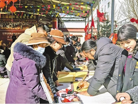 圖為活動(dòng)中,拉薩書法家為社區(qū)居民書寫新年祝福語(yǔ)。記者 拉巴桑姆 攝