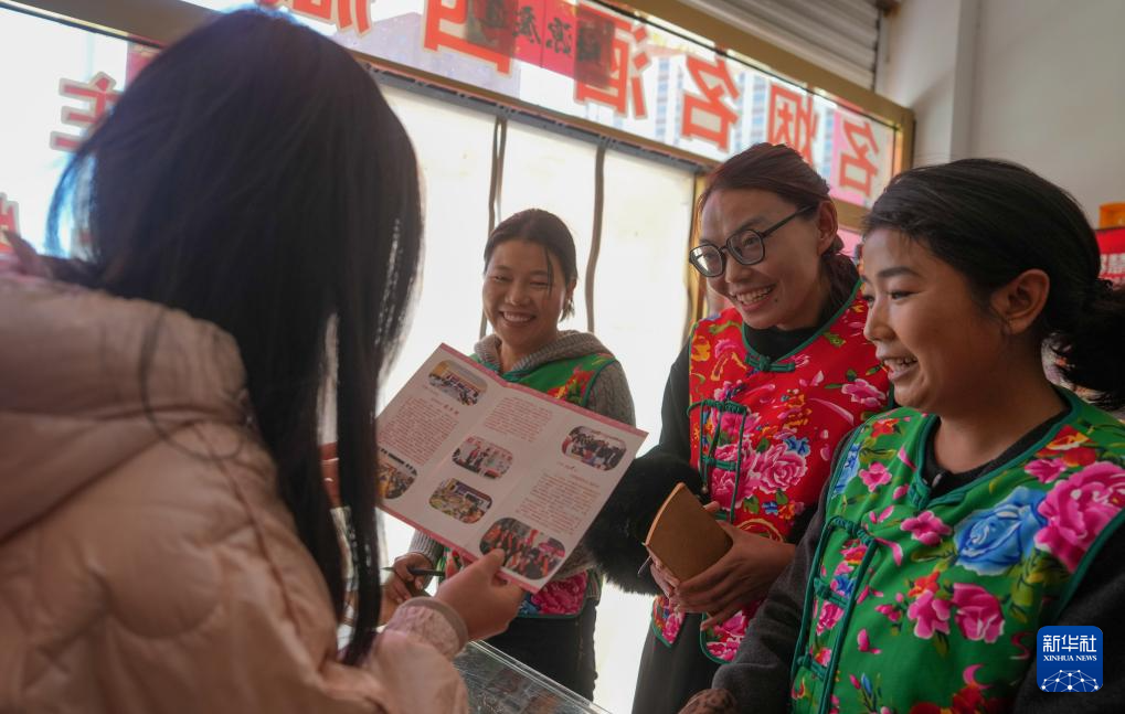 “花大姐”向轄區(qū)商戶(hù)宣傳議事會(huì)各種惠民事項(xiàng)(3月6日攝)。新華社記者 晉美多吉 攝