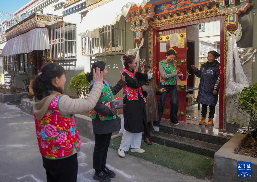 “花大姐”走訪(fǎng)轄區(qū)群眾(3月6日攝)。新華社記者 晉美多吉 攝