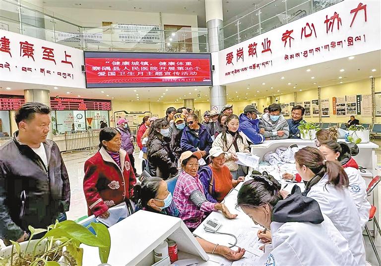 察隅縣人民醫(yī)院醫(yī)護(hù)人員為群眾測(cè)量血壓。記者 劉楓 王珊 謝筱純 攝