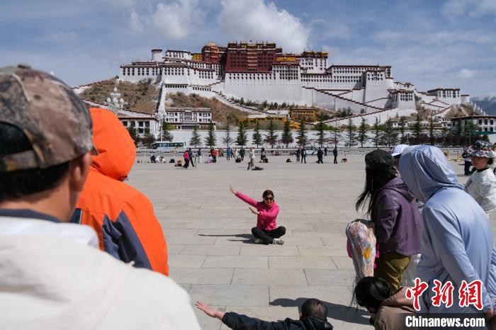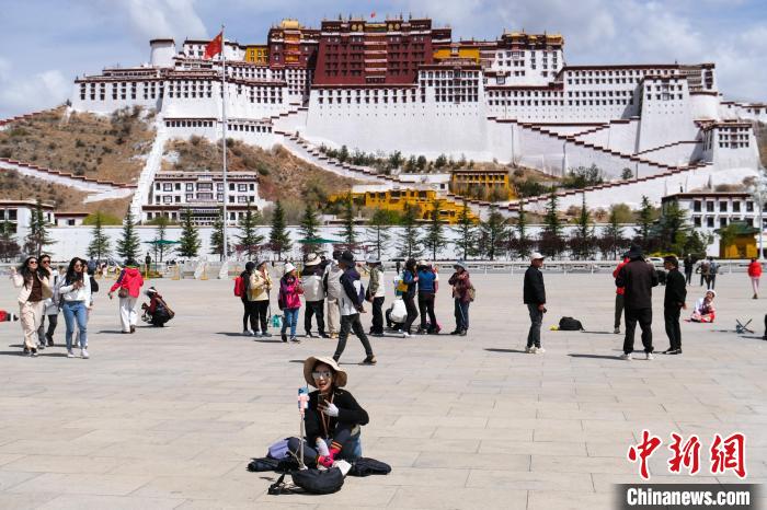 4月18日,游客在拉薩布達拉宮廣場拍照留念。中新社記者 江飛波 攝