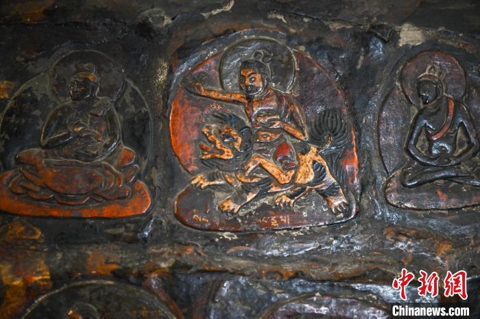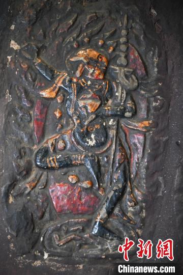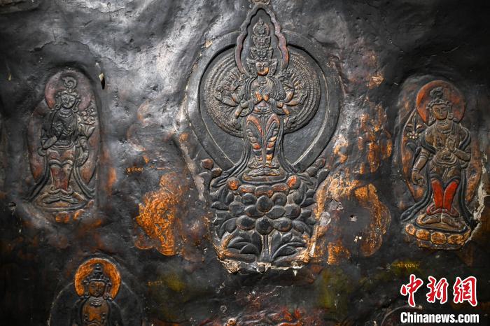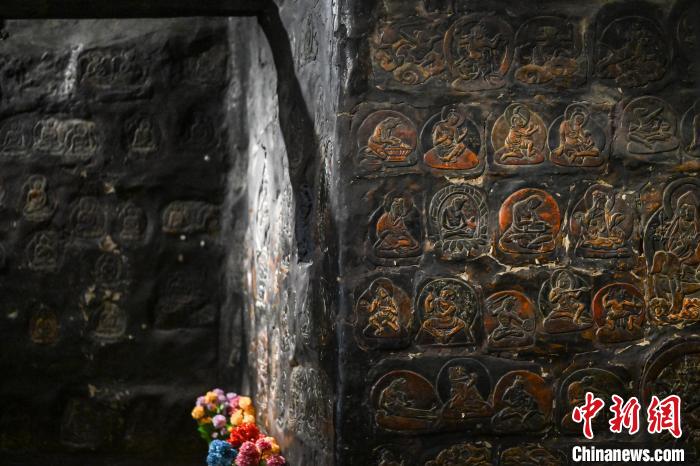4月27日,記者探訪了當雄縣貢堂鄉(xiāng)沖嘎爾村康馬寺的瑪尼拉康?,斈崂凳窃撍鲁扌卸粗獾脑缙谧诮袒顒訄鏊彩撬略豪镒罟爬系慕ㄖ?。這里保存著令人驚嘆的石刻造像墻,這些石刻距今已有三百年歷史?,斈崂低庥^普通,但其室內(nèi)六面墻上整齊地貼滿了浮雕石刻板,共計1213塊(僅一塊缺失)。石刻內(nèi)容豐富,涵蓋了藏傳佛教各宗各派的本尊、祖師、佛母菩薩等,造型多姿多樣,線條清晰流暢。這處石刻造像墻對于研究西藏傳統(tǒng)雕刻、藏傳佛教以及歷史具有重大意義。中新社記者 貢嘎來松 攝
