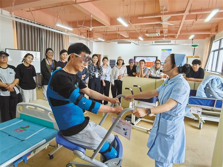 近日,福建省漳州市正興養(yǎng)護(hù)院內(nèi),15名來自昌都市邊壩縣的臨床護(hù)理人員正在觀摩學(xué)習(xí)老年病房常見護(hù)理操作,并與臨床專家研討高原地區(qū)老年慢病護(hù)理標(biāo)準(zhǔn)化建設(shè)相關(guān)問題、這是他們抵達(dá)福建省接受系統(tǒng)化培訓(xùn)的第十天。這些長期在平均海拔3500米地區(qū)工作的一線醫(yī)護(hù)人員,很多都是第一次系統(tǒng)學(xué)習(xí)老年病房標(biāo)準(zhǔn)化護(hù)理流程。