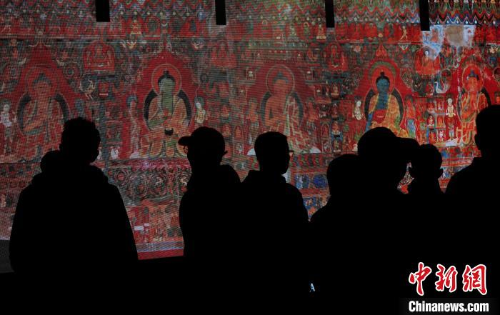 圖為觀眾在西藏博物館內欣賞阿里古格經典壁畫數字化成果展。李林 攝