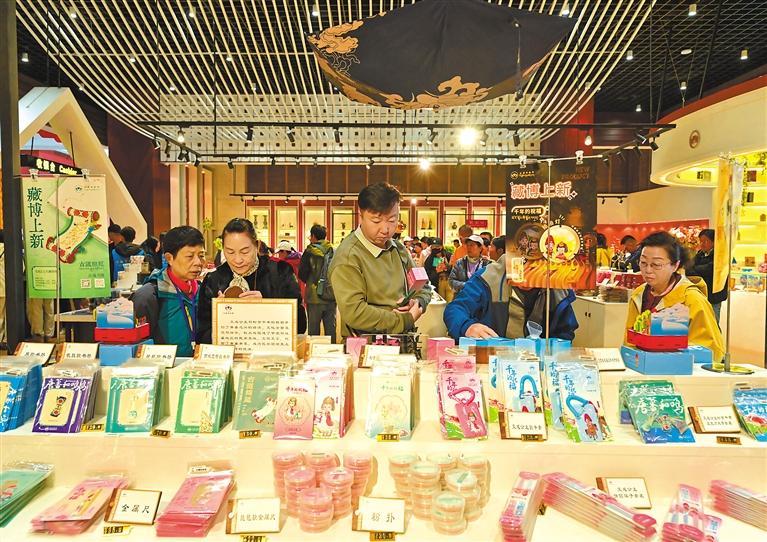 市民、游客在西藏博物館選購(gòu)文創(chuàng)產(chǎn)品。記者 唐斌 攝