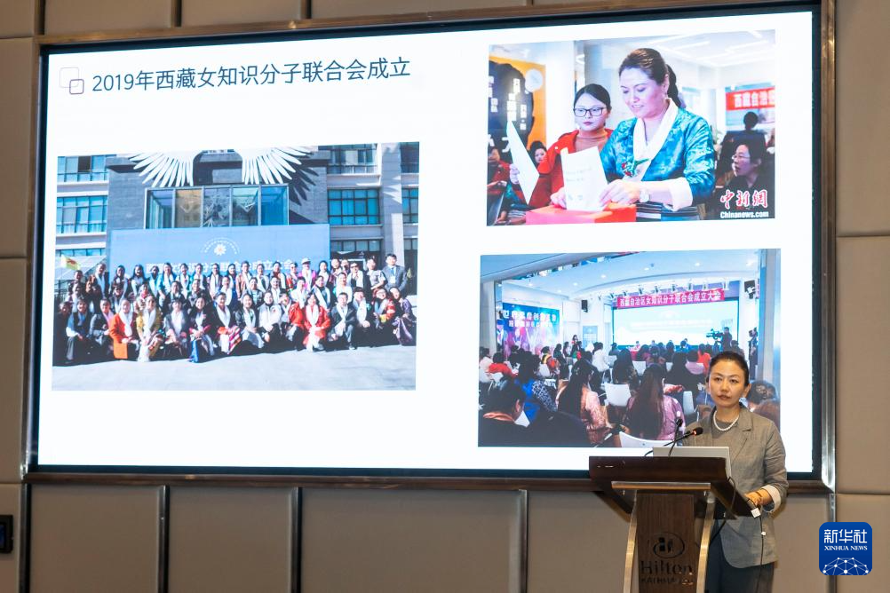 在交流會上,交流團成員介紹了西藏自治區(qū)成立60年來的發(fā)展進步與成就,包括62.8萬建檔立卡貧困人口全部脫貧,74個貧困縣區(qū)全部摘帽;率先在全國建立從幼兒園、小學、初中到高中15年的公費教育體系;經(jīng)濟實現(xiàn)高質量發(fā)展。
