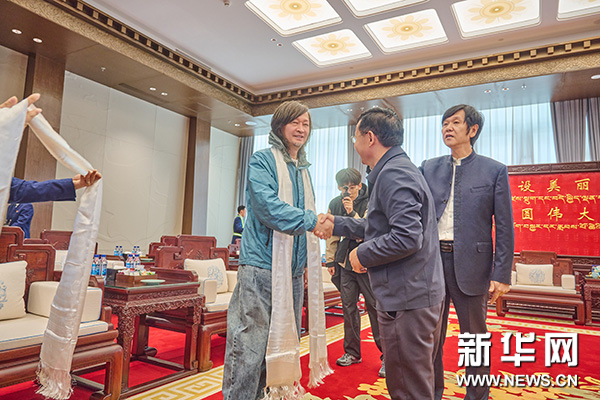 西藏自治區(qū)黨委宣傳部副部長、文化和旅游廳黨組書記肖傳江向藝術(shù)家們敬獻哈達