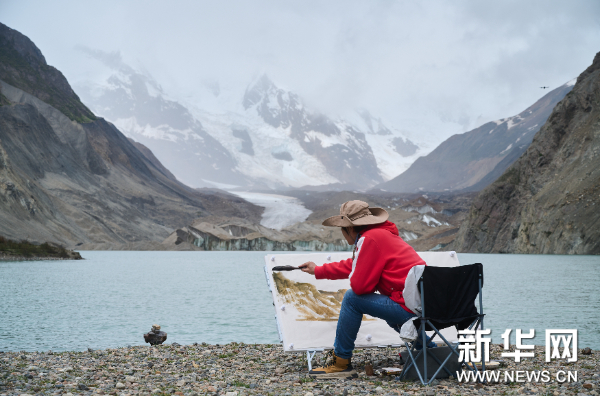 6月17日,“文化西藏 天上畫卷”高原高峰藝術(shù)家西藏行寫生活動走進廓瓊崗日冰川。