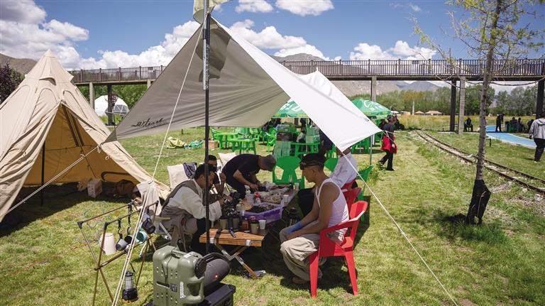 記者看到,綠野市集“沖賽康”充滿了煙火氣,30余家特色攤位齊聚林間。這里不僅有藏式甜茶、糌粑制品等傳統(tǒng)美食,讓游客大飽口福,還有氆氌文創(chuàng)、非遺手作等特色產(chǎn)品,滿足游客的購物需求。此外,互動(dòng)游戲與民俗體驗(yàn)也吸引了眾多游客參與,營造出充滿活力的林卡生活場景。