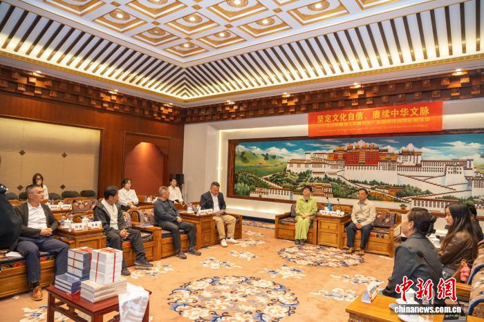 圖為8月27日,中國華夏文化遺產(chǎn)基金會向西藏博物館捐贈《文成公主》連環(huán)畫等作品現(xiàn)場。(主辦方供圖)
